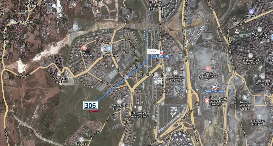 Land for sale ready for residential and commercial development in Başakşehir, specifically in Kayabaşı. It has an area of 9685 square meters and comes with a high-rise building permit. The title deed (ownership document) is independent.
