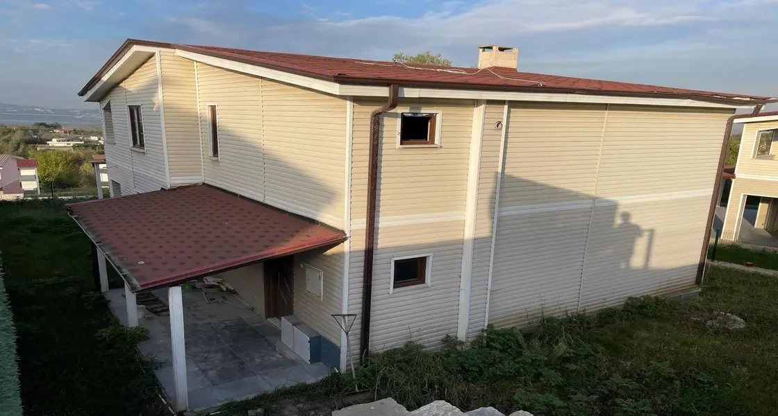 Villa For sale : 3+1 villa (three bedrooms and a living room) in Sakarya Province, specifically in Sapanca, Turkey. The villa is independent, covering 400 square meters, and features a private garden and a main open kitchen. The villa is ready for immediate delivery.