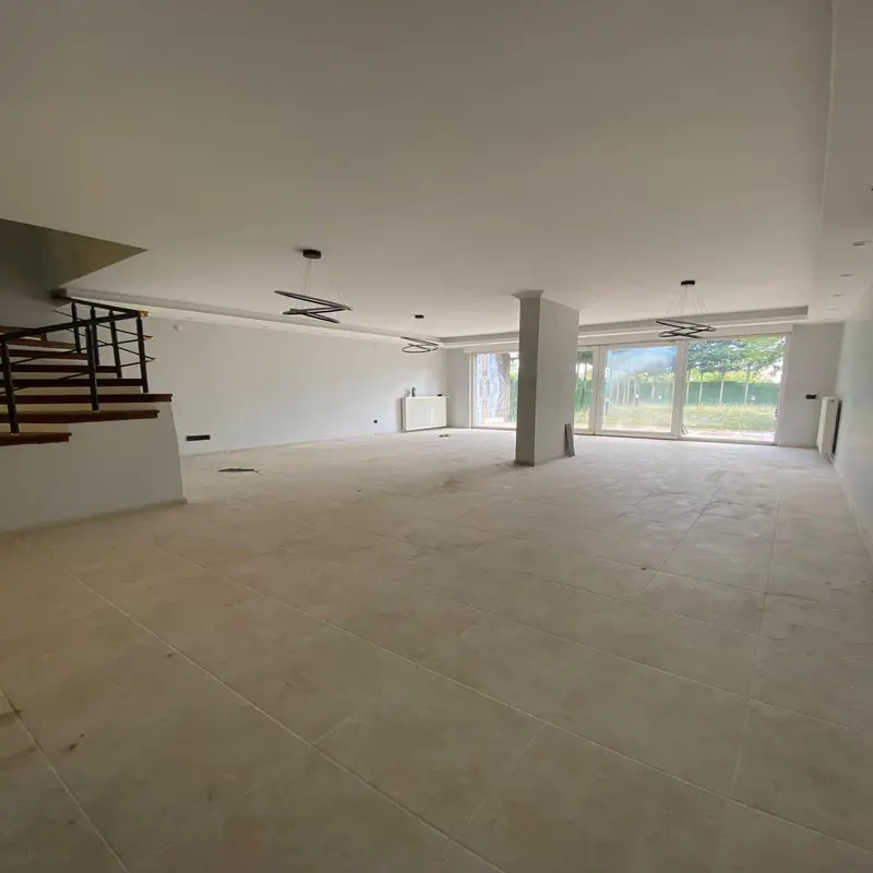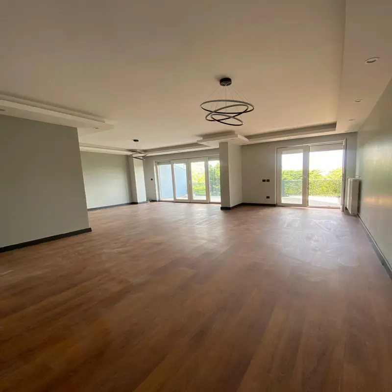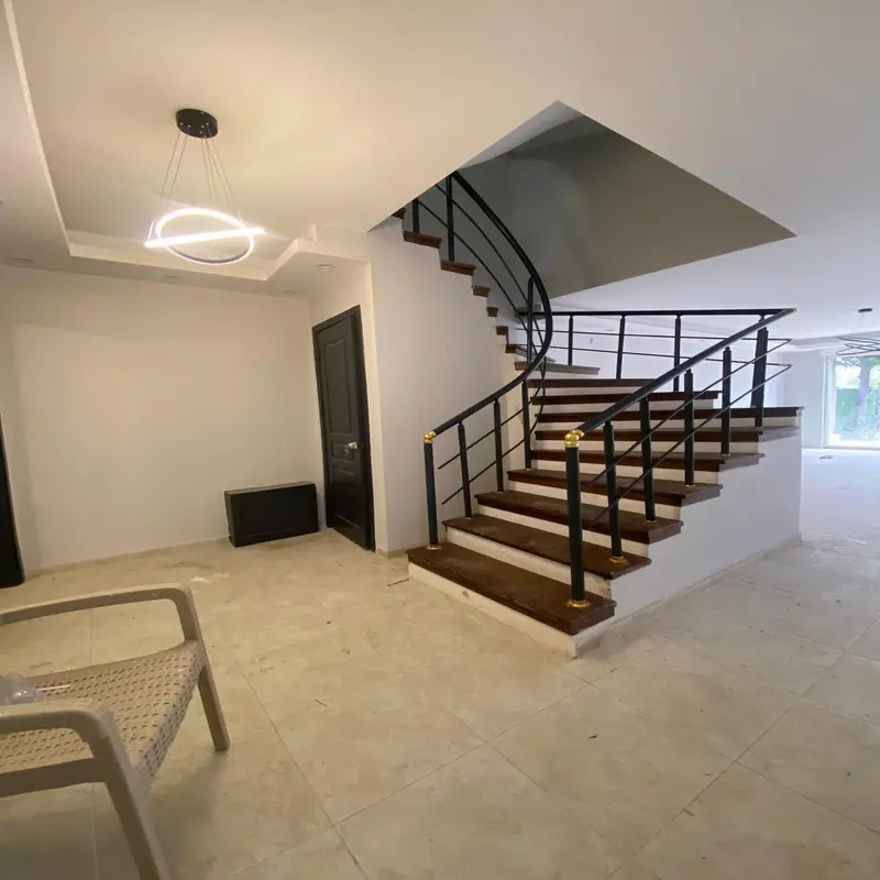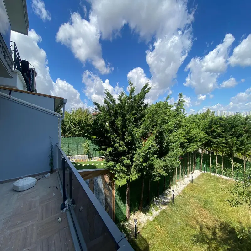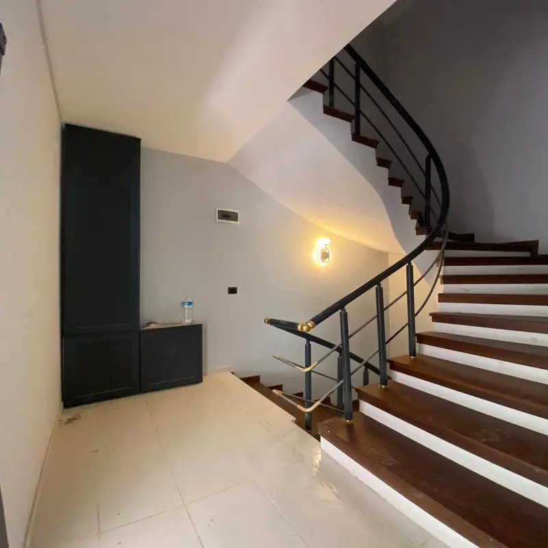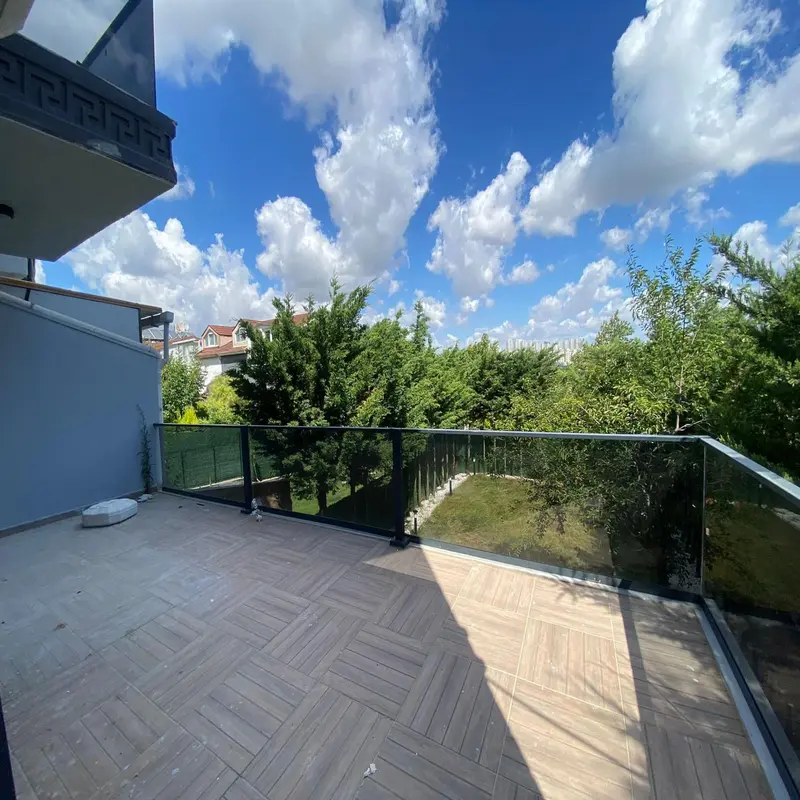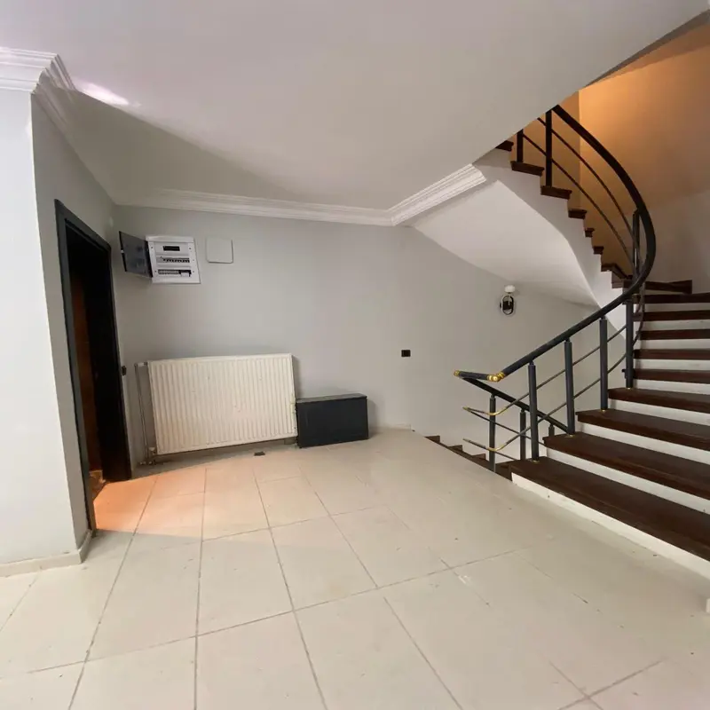 Independent villa for sale within a residential complex in Bahçeşehir, part of the Başakşehir municipality. The apartment style is 4+2, with a spacious area of 420 square meters, spread over two floors. It includes 4 bathrooms and 2 balconies, in addition to a closed lower kitchen and an open American-style upper kitchen.