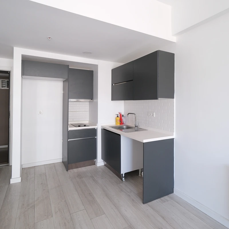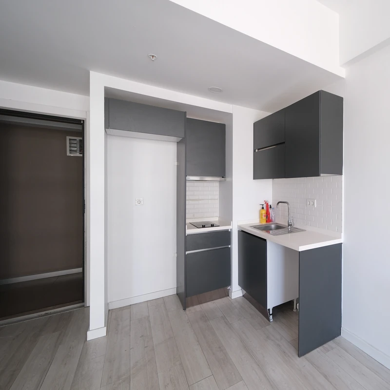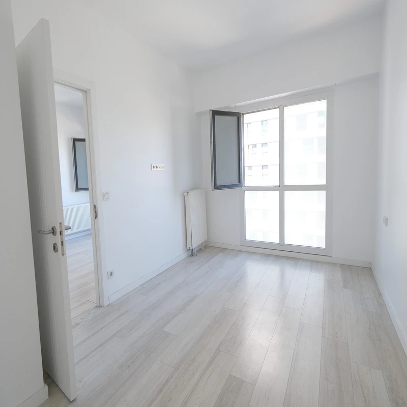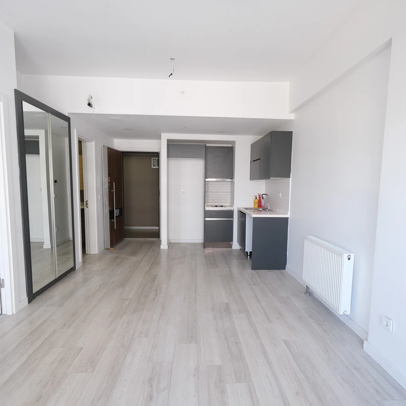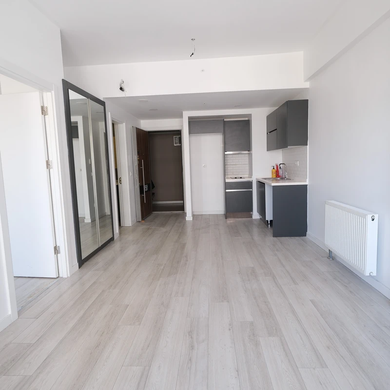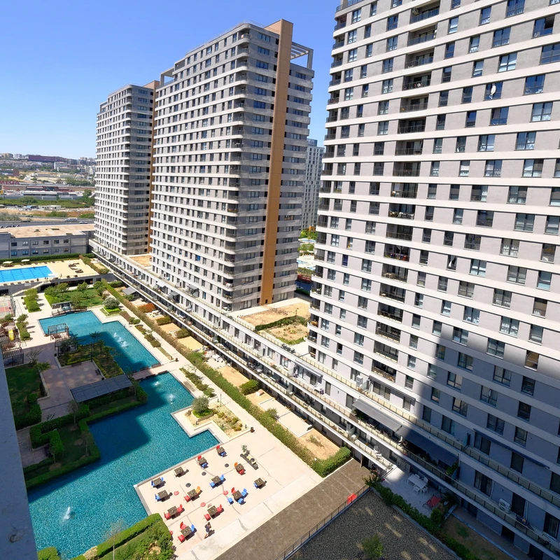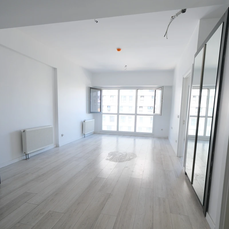 Apartment for sale in Esenyurt, Istanbul, within a residential complex. The apartment is located in the residential complex known as "Babacan Premium." It is a 1+1 apartment (one bedroom and a living room), with a total area of 90 square meters. Located on the 11th floor, it has a garden and city view. The apartment is vacant and ready for immediate handover.