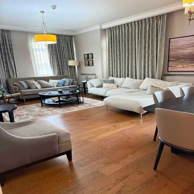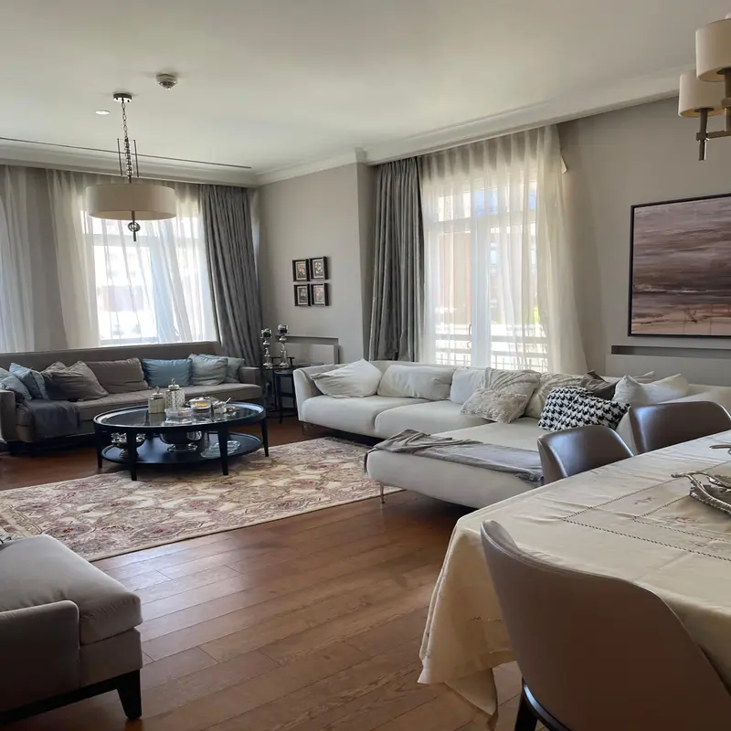 An exclusive, super deluxe apartment for sale in the Emaar Square complex in the Uskudar district, on the Asian side of Istanbul. The apartment is fully furnished with the latest brands, has three bedrooms and a living room, and is located on the 3rd floor. The apartment has a spacious area of 192m2, a closed kitchen, a balcony, and 4 bathrooms with a Jacuzzi. The apartment is a real investment opportunity and is ready for immediate delivery and occupancy or direct investment.